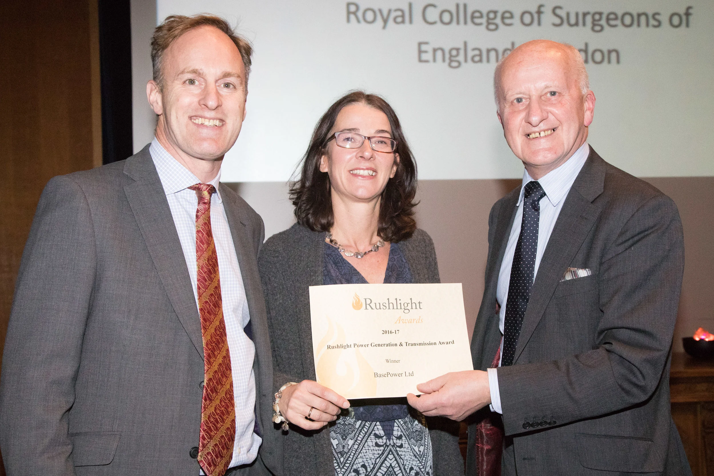 John Loughhead, Chief Scientific Adviser to the Department for Business, Energy & Industrial Strategy, presented BasePower with the award at the Rushlight Awards ceremony, which took place at the Royal College of Surgeons on 25 January.